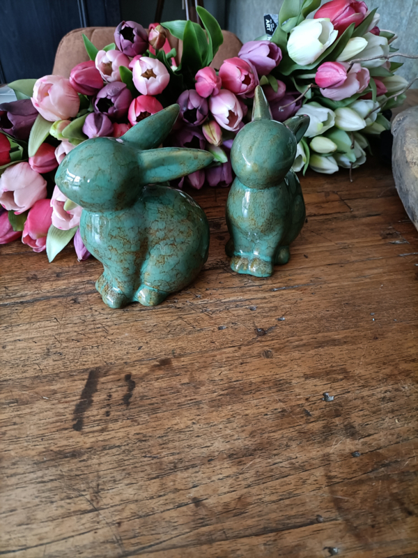 Wj29 (55.) Konijn groenDeze zittende konijnen doen het leuk als deco bij vanalles. Door de gebruikte kleur is het ook niet meteen zo heftig aanwezig.
