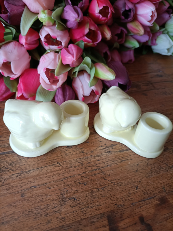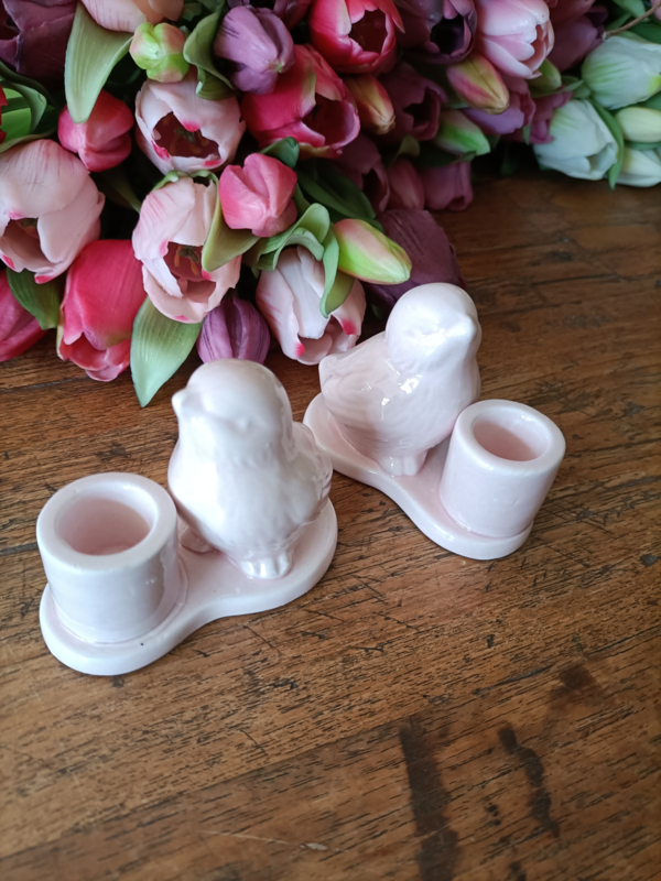 Wj38 (55.) Kandelaar kuiken rozeDeze mooi zacht roze kandelaars zijn 6,5 hoog en 8,5 cm breed.